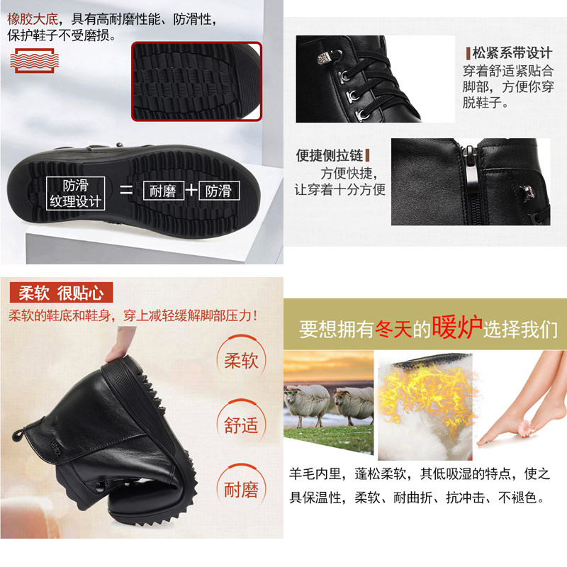 真皮妈妈女棉鞋加绒保暖羊毛短靴由店盟依据商品的销售量、好评率和价格,以及淘宝店的描述相符评分 、服务态度评分和发货速度评分进行筛选,该商品的完整标题为“中老年妈妈棉鞋真皮短靴女加绒加厚冬季新款羊毛舒适软底平底皮鞋”,选自淘宝店店名为“玉金色世界”,店铺dsr评分,店铺所在地“江苏 扬州”,所属一级分类为“女鞋”,子分类为“时装靴”。精挑细选让消费者在淘宝店里购物更省心便捷实惠,网上购物时更加方便的挑选即称心又便宜的商品。
