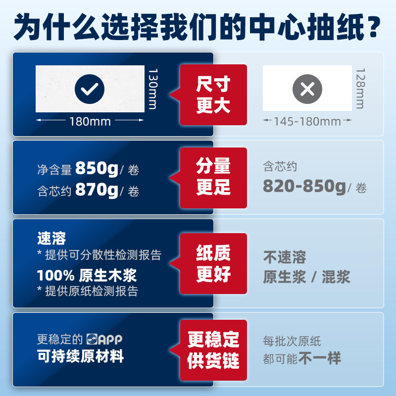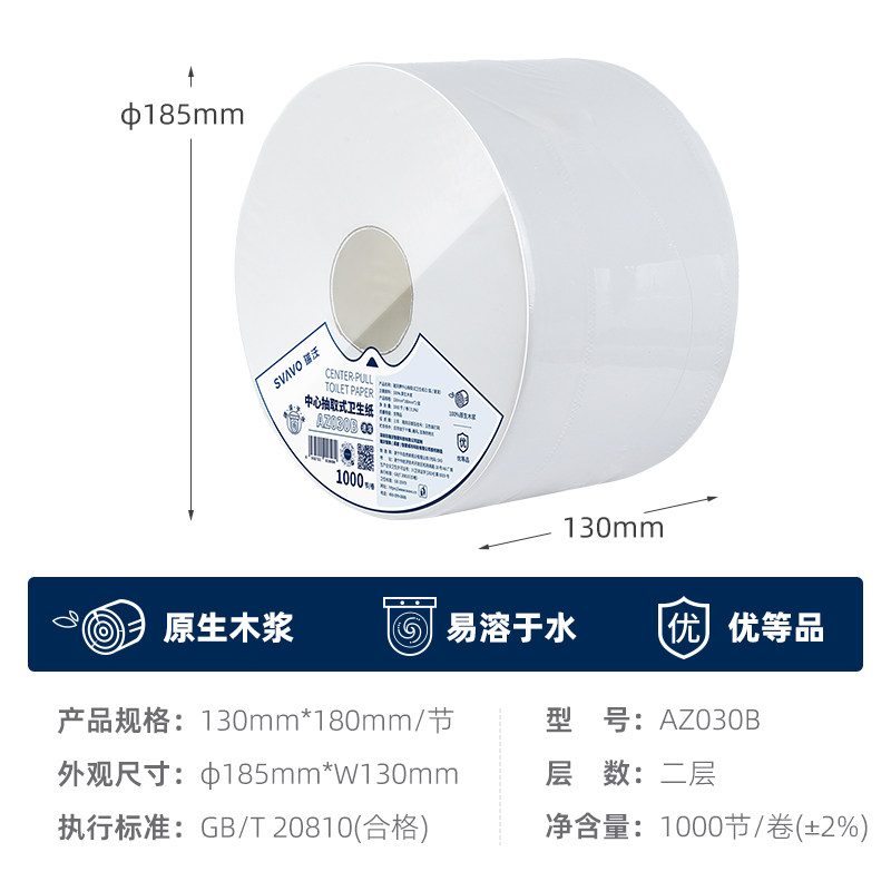 瑞沃中心抽取式卫生纸木桨大卷纸由店盟依据商品的销售量、好评率和价格,以及天猫专卖店的描述相符评分 、服务态度评分和发货速度评分进行筛选,该商品的完整标题为“瑞沃中心抽取式卫生纸原生木桨大卷纸厕所卫生纸水溶性抽纸餐巾纸”,选自天猫专卖店店名为“Svavo瑞沃智美专卖店”,该店已通过企业认证和支付宝认证为天猫专卖店,店铺dsr评分,店铺所在地“四川 成都”,所属一级分类为“洗护清洁剂/卫生巾/纸/香薰”,子分类为“卷筒纸”。精挑细选让消费者在天猫专卖店里购物更省心便捷实惠,网上购物时更加方便的挑选即称心又便宜的商品。