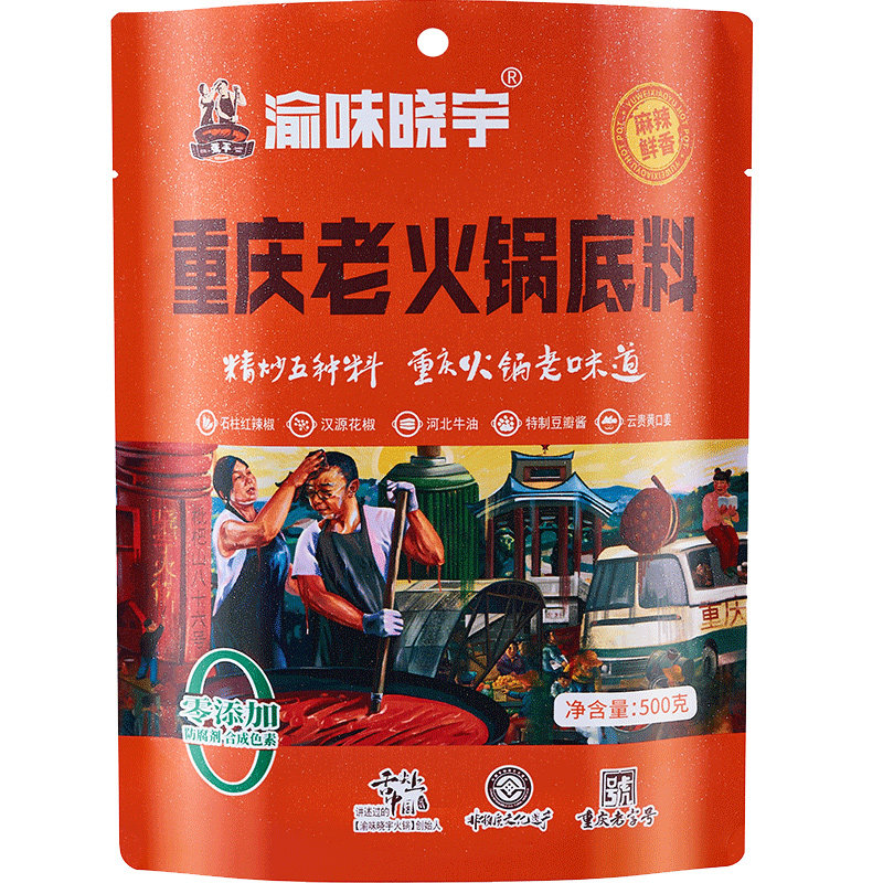 渝味晓宇重庆老火锅底料360克,500克由店盟依据商品的销售量、好评率和价格,以及淘宝店的描述相符评分 、服务态度评分和发货速度评分进行筛选,选自淘宝店店名为“开心小猪零食店”,店铺dsr评分,店铺所在地“重庆”,所属一级分类为“粮油调味/速食/干货/烘焙”,子分类为“火锅调料”。精挑细选让消费者在淘宝店里购物更省心便捷实惠,网上购物时更加方便的挑选即称心又便宜的商品。