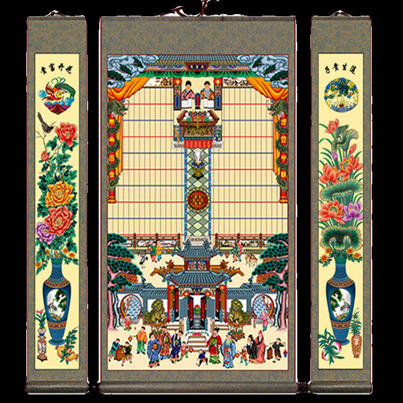 褪色布过年供奉老祖宗家谱挂画卷轴家堂轴子族宗谱祖先家普牌位