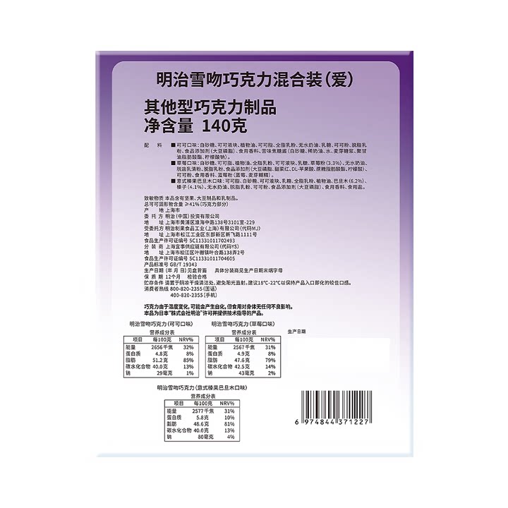 Meiji/明治雪吻夹心巧克力送女友由店盟依据商品的销售量、好评率和价格,以及淘宝店的描述相符评分 、服务态度评分和发货速度评分进行筛选,该商品的完整标题为“明治雪吻夹心巧克力混合装140g礼盒零食结婚喜糖圣诞节日送女友”,选自淘宝店店名为“吉事在家”,店铺dsr评分,店铺所在地“浙江 杭州”,所属一级分类为“零食/坚果/特产”,子分类为“巧克力制品”。精挑细选让消费者在淘宝店里购物更省心便捷实惠,网上购物时更加方便的挑选即称心又便宜的商品。