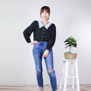 韩都衣舍雪纺娃娃领蕾丝长袖衬衫¥338去看看今年复古风回潮,穿着方面也更加趋向于复古风的设计,所以我在穿搭的时候也更偏爱复古的感觉