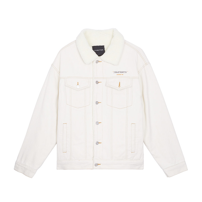 风格:简约优雅的牛仔外套,版型剪裁很修身,从领口一直到内里都采用了仿羊羔绒设计,看上去就很保暖,也别有一-番风情