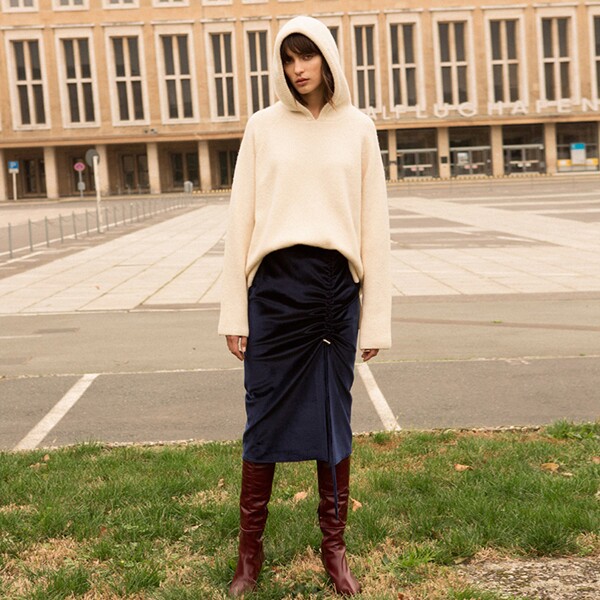 除了酷、美的风格,相信可能也有不少姐妹钟爱复古风。说到复古风,LILY 举双手推荐丝绒半裙,轻轻松松就能打造出优雅的复古风,哪怕是像卫衣这种休闲味十足的单品,也能被衬托出复古感~