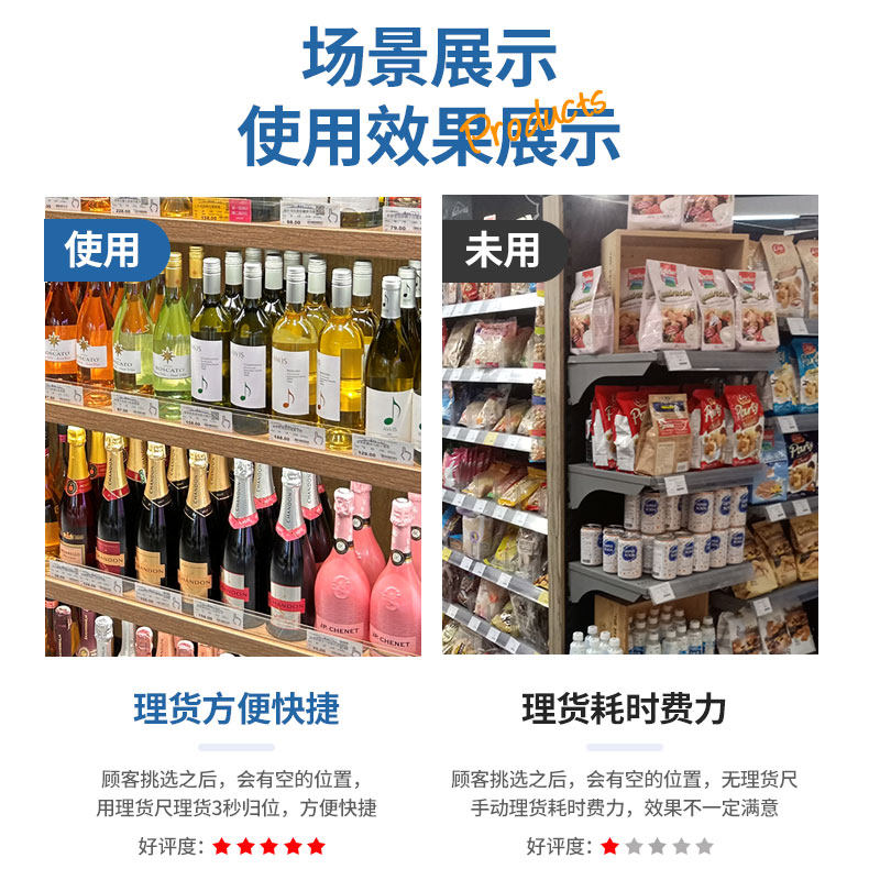 超市货架不锈钢理货尺3秒整齐由店盟依据商品的销售量、好评率和价格,以及淘宝店的描述相符评分 、服务态度评分和发货速度评分进行筛选,该商品的完整标题为“胖东来超市同款货架商品理货尺子饮料零食排列整理专用工具不锈钢”,选自淘宝店店名为“郑州汇超丰商贸有限公司”,店铺dsr评分,店铺所在地“河南 郑州”,所属一级分类为“商业/办公家具”,子分类为“货架附件/货架配件/洞洞板配件”。精挑细选让消费者在淘宝店里购物更省心便捷实惠,网上购物时更加方便的挑选即称心又便宜的商品。
