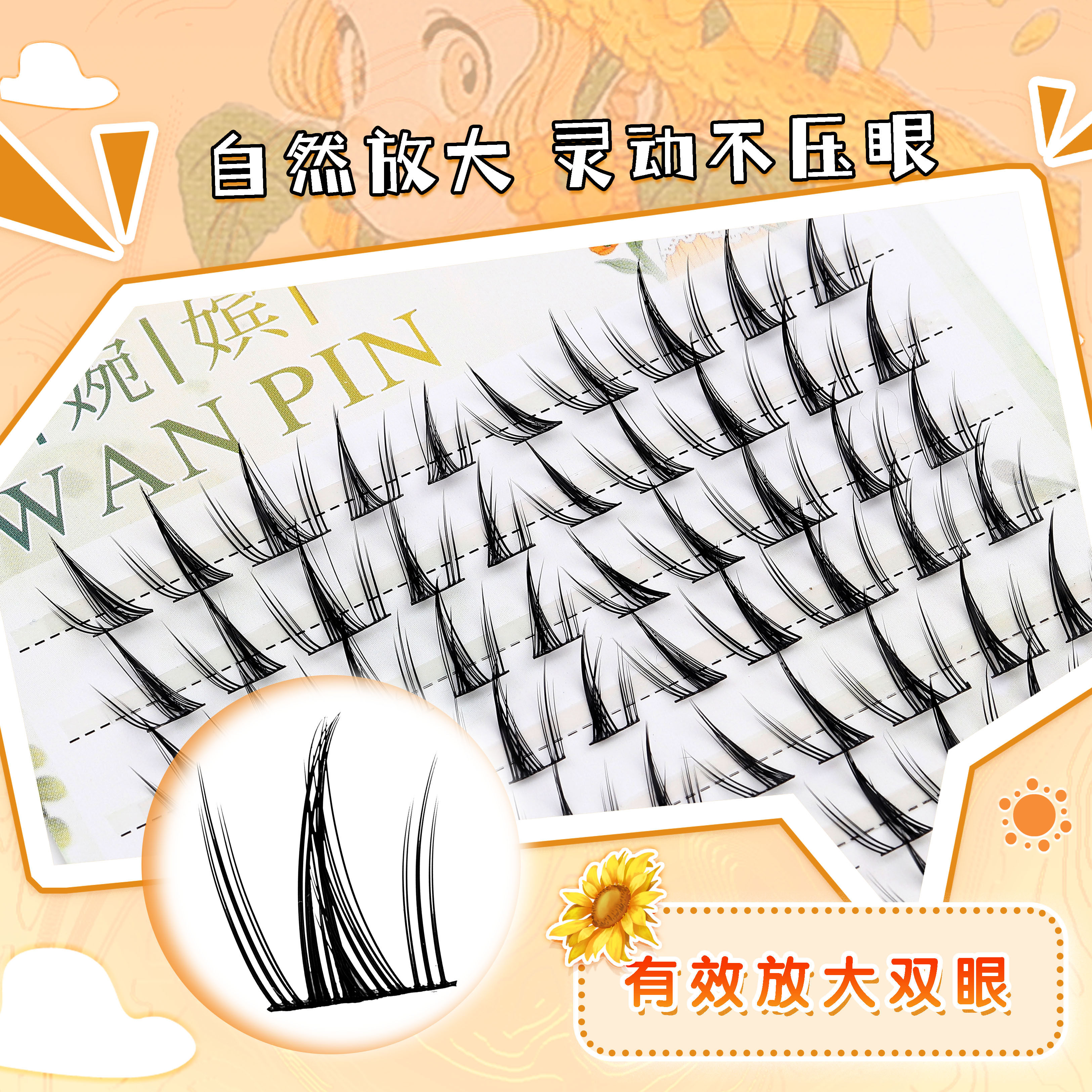 婉嫔向日葵假睫毛漫画纯欲风仿真自然浓密蝴蝶少女三部曲懒人睫毛由店盟依据商品的销售量、好评率和价格,以及天猫旗舰店的描述相符评分 、服务态度评分和发货速度评分进行筛选,选自天猫旗舰店店名为“婉嫔旗舰店”,该店已通过企业认证和支付宝认证为天猫旗舰店,店铺dsr评分,主营品牌婉嫔,店铺所在地“山东 青岛”,所属一级分类为“彩妆/香水/美妆工具”,子分类为“假睫毛”。精挑细选让消费者在天猫旗舰店里购物更省心便捷实惠,网上购物时更加方便的挑选即称心又便宜的商品。