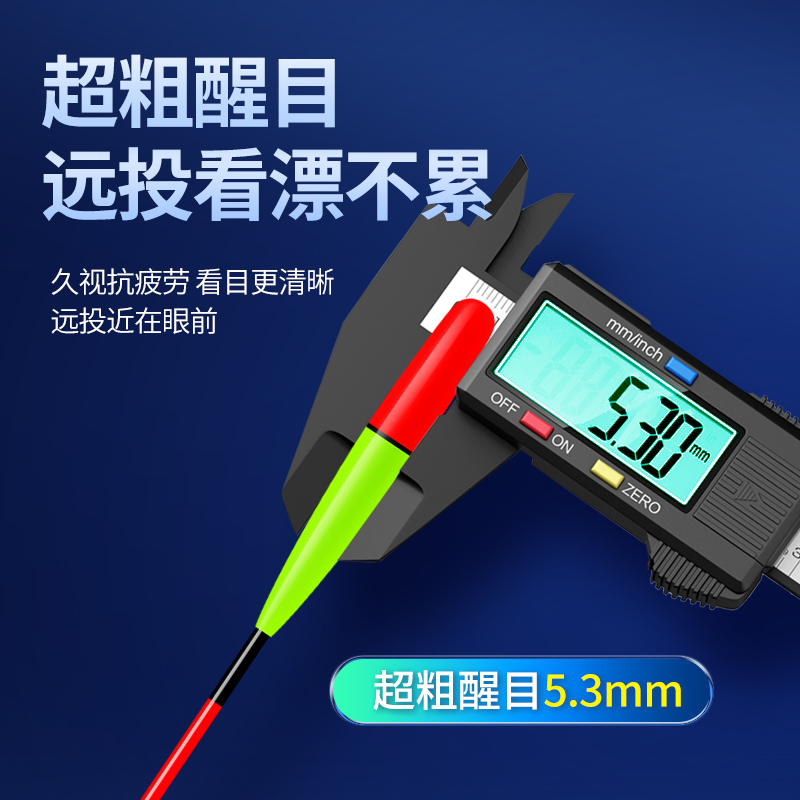 明羽传复合材质加粗醒目夜光漂由店盟依据商品的销售量、好评率和价格,以及淘宝店的描述相符评分 、服务态度评分和发货速度评分进行筛选,该商品的完整标题为“日夜两用浅水夜光漂加粗醒目打浮电子漂库钓深水大物远投矶钓浮漂”,选自淘宝店店名为“渔家乐浮漂工厂店”,店铺dsr评分,店铺所在地“湖南 岳阳”,所属一级分类为“户外/登山/野营/旅行用品”,子分类为“浮漂”。精挑细选让消费者在淘宝店里购物更省心便捷实惠,网上购物时更加方便的挑选即称心又便宜的商品。