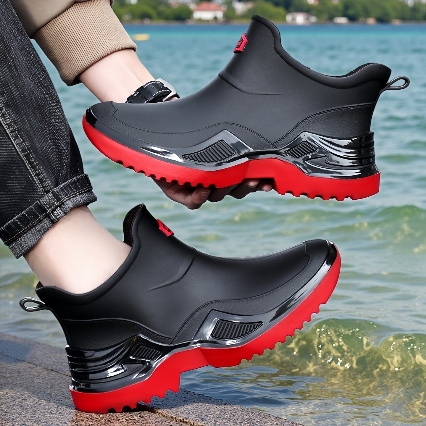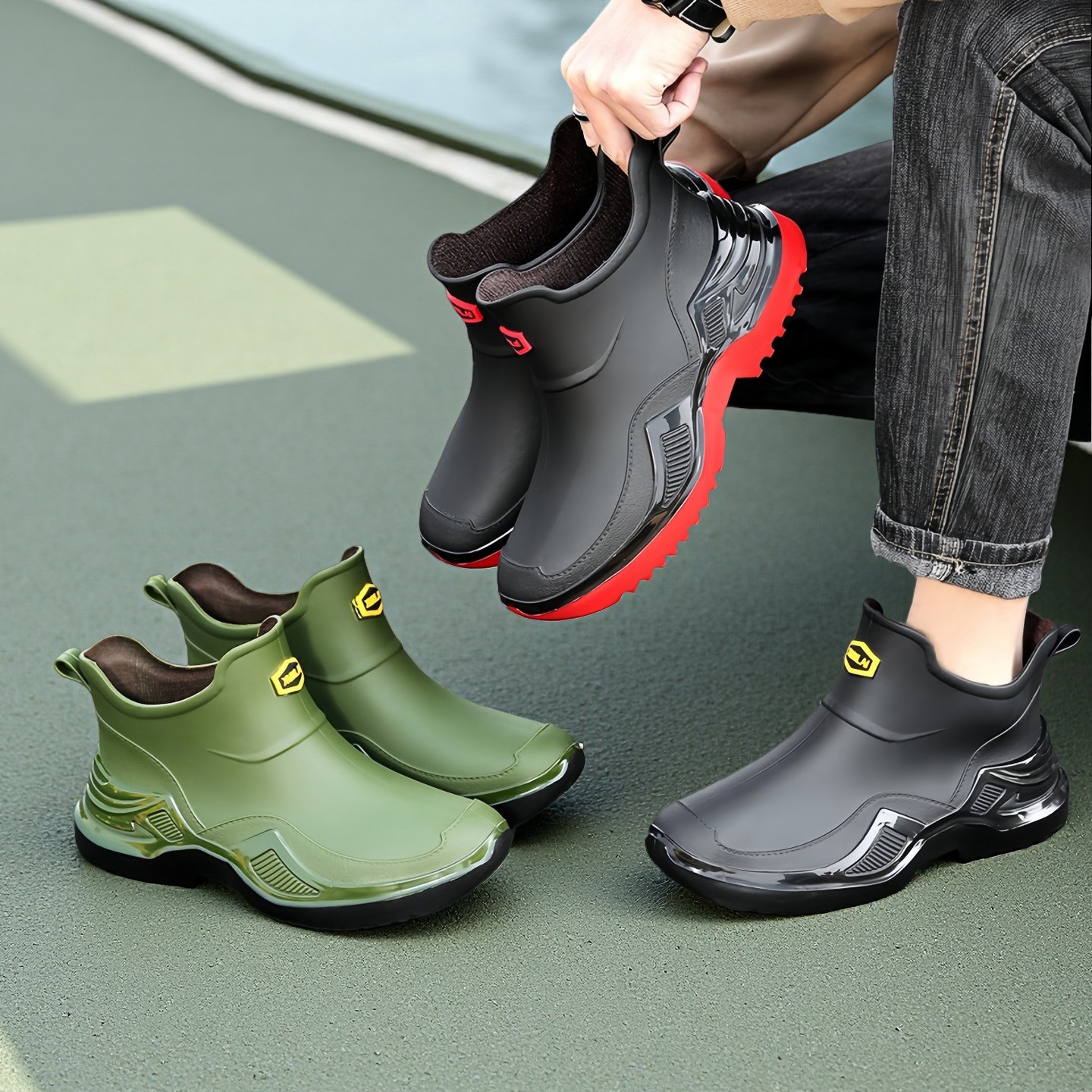 轻便舒适低筒男士雨鞋防水防滑由店盟依据商品的销售量、好评率和价格,以及淘宝店的描述相符评分 、服务态度评分和发货速度评分进行筛选,该商品的完整标题为“轻便舒适低筒男士雨鞋防水防滑厨房工作鞋外卖骑手时尚耐磨运动款”,选自淘宝店店名为“都市鞋馆”,店铺dsr评分,店铺所在地“广东 揭阳”,所属一级分类为“流行男鞋”,子分类为“雨鞋”。精挑细选让消费者在淘宝店里购物更省心便捷实惠,网上购物时更加方便的挑选即称心又便宜的商品。