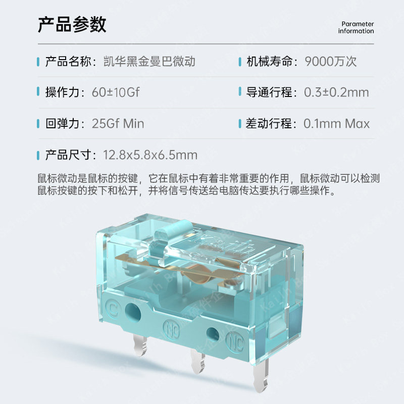 凯华 Kailh 罗技鼠标升级客制化微动开关高寿命9000万次黑金曼巴由店盟依据商品的销售量、好评率和价格,以及天猫旗舰店的描述相符评分 、服务态度评分和发货速度评分进行筛选,选自天猫旗舰店店名为“Kailh旗舰店”,该店已通过企业认证和支付宝认证为天猫旗舰店,店铺dsr评分,主营品牌Kailh,店铺所在地“广东 东莞”,所属一级分类为“电脑硬件/显示器/电脑周边”,子分类为“键轴”。精挑细选让消费者在天猫旗舰店里购物更省心便捷实惠,网上购物时更加方便的挑选即称心又便宜的商品。