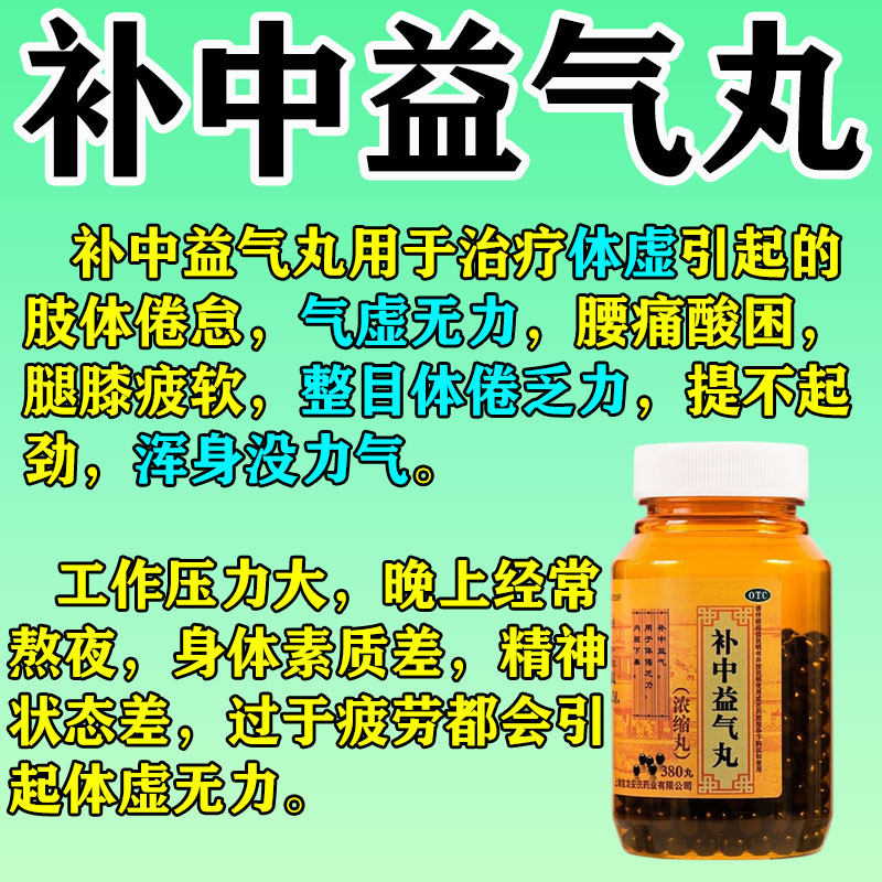 【上龙】补中益气丸380丸*1瓶/盒由店盟依据商品的销售量、好评率和价格,以及天猫旗舰店的描述相符评分 、服务态度评分和发货速度评分进行筛选,该商品的完整标题为“补中益气丸正品疲劳乏力没精神浑身没劲四肢无力气虚补气益血中药”,选自天猫旗舰店店名为“骏鸟大药房旗舰店”,该店已通过企业认证和支付宝认证为天猫旗舰店,店铺dsr评分,主营品牌骏鸟大药房,店铺所在地“河南 洛阳”,所属一级分类为“OTC药品/国际医药”,子分类为“肠胃用药”。精挑细选让消费者在天猫旗舰店里购物更省心便捷实惠,网上购物时更加方便的挑选即称心又便宜的商品。