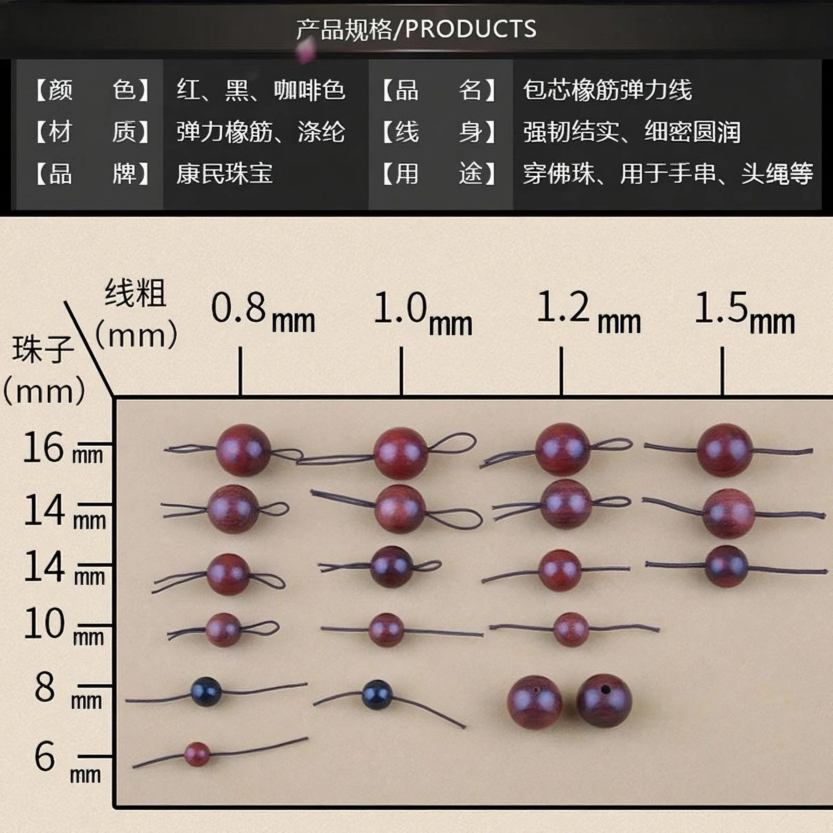 包芯弹力线手串弹力绳串珠线由店盟依据商品的销售量、好评率和价格,以及天猫旗舰店的描述相符评分 、服务态度评分和发货速度评分进行筛选,该商品的完整标题为“文玩串珠弹力线包芯穿手链佛珠绳橡胶串珠手工DIY耐磨手串弹力绳”,选自天猫旗舰店店名为“康民珠宝旗舰店”,该店已通过企业认证和支付宝认证为天猫旗舰店,店铺dsr评分,主营品牌康民珠宝,店铺所在地“浙江 金华”,所属一级分类为“饰品/流行首饰/时尚饰品新”,子分类为“绳”。精挑细选让消费者在天猫旗舰店里购物更省心便捷实惠,网上购物时更加方便的挑选即称心又便宜的商品。