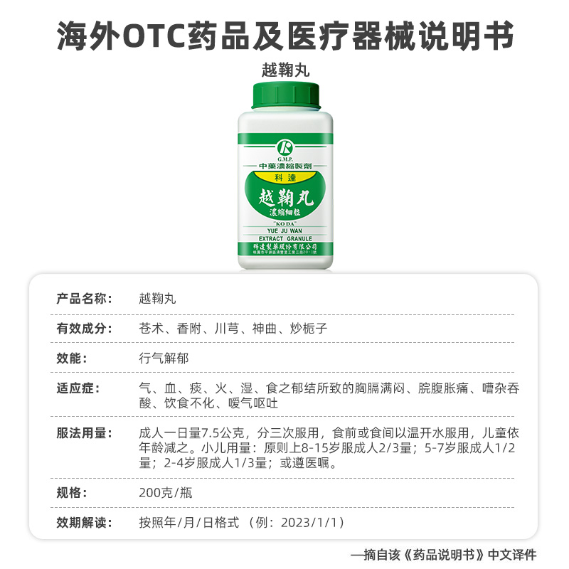 科达制药越鞠丸正品官方旗舰店中国台湾颗粒中成药由店盟依据商品的销售量、好评率和价格,以及天猫旗舰店的描述相符评分 、服务态度评分和发货速度评分进行筛选,选自天猫旗舰店店名为“科达制药海外旗舰店”,该店已通过企业认证和支付宝认证为天猫旗舰店,店铺dsr评分,主营品牌科达制药,店铺所在地“香港 香港岛”,所属一级分类为“OTC药品/国际医药”,子分类为“国际肠胃用药”。精挑细选让消费者在天猫旗舰店里购物更省心便捷实惠,网上购物时更加方便的挑选即称心又便宜的商品。